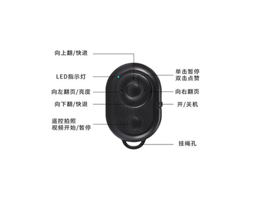 支持各直播平台、电子书的上下切换视频及电子书翻页浏览,播放暂停点赞一键搞定,照相录像一键完成。更支持10米距离拍照录像。